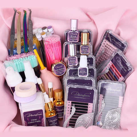 Venda quente DancingSwan Kits de extensão de cílios para iniciantes, conjunto de ferramentas profissionais para extensão de cílios